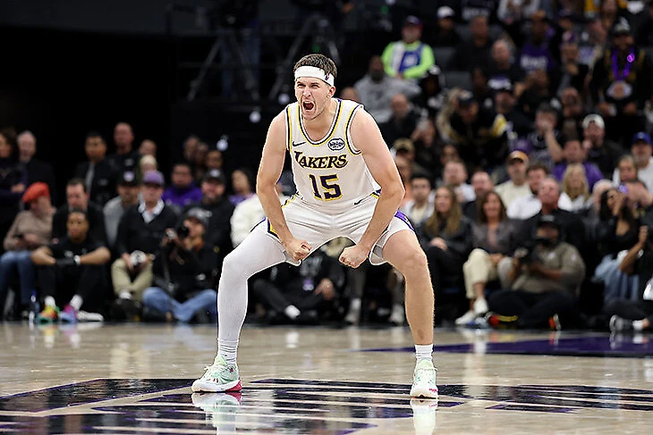 Лука Дончич и Леброн Джеймс не вышли на паркет в матче с «Кингз». Остину Ривзу пришлось разбираться самому: 51 очко, 11 подборов, 9 передач, 2 перехвата при 12 из 22 забитых с игры, 6 из 10 трехочковых за 39 минут.