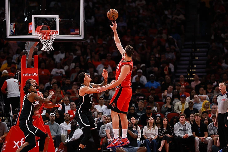 «Хьюстон» со своими размерами – пока только 21-й в НБА по блокам за 100 владений, они в середине таблицы как по частоте бросков соперника из-под кольца, так и по реализации. Трешек против «Рокетс» кидают много (больше выносят только против 3 команд НБА), и дугу они отдают, но не то чтобы душат «краску».