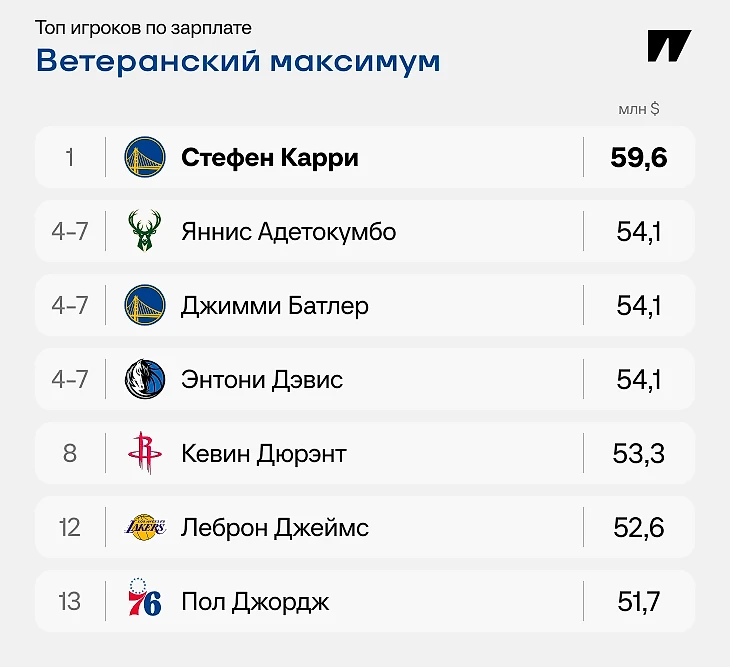 Самые богатые игроки НБА-2025/26: 35 максималок, Карри побил рекорд Уилта, MVP – даже не в топ-30