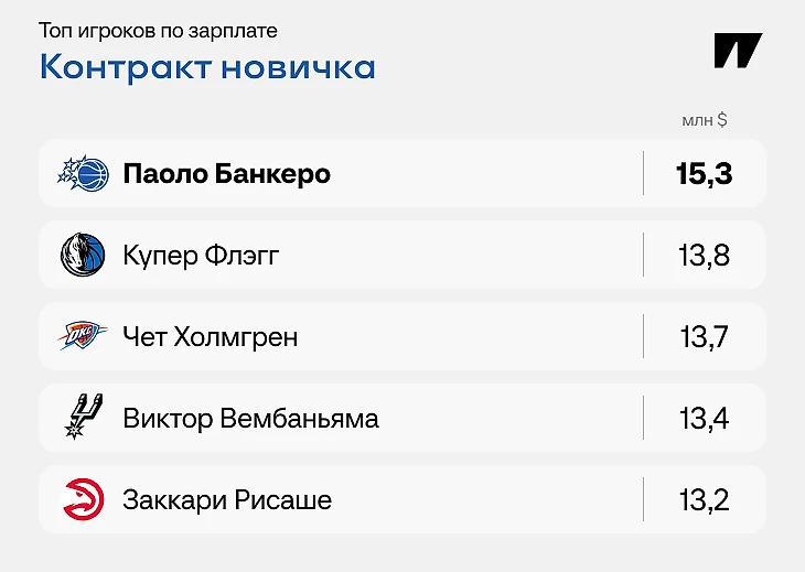 Аналогичные суммы – в контрактах более молодых, но при этом и более успешных игроков. Первую максималку звезда получает, когда переходит с контракта новичка. И те, кто успел до этого продления попасть в сборную сезона, получают прибавку.