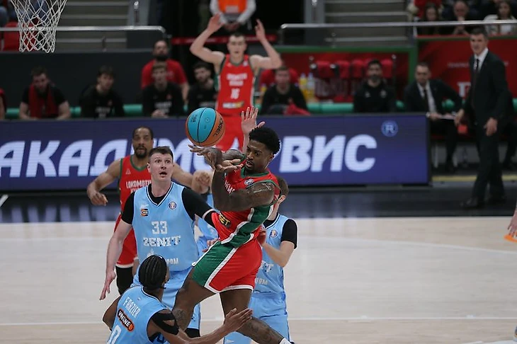 В одной из следующих атак Патрик после пик-н-ролла (PnR) с Поповым пошел в проход, отвлек внимание защитников и отдал скрытую передачу (No look pass) на забегающего за спину защитника Темирова (back door cut). Габариты Миллера позволяют ему зачастую «пробивать» заслоны противника, что заставляет их более агрессивно действовать, нарушая правила. За 5:40 до конца четверти Патрик прошел в «краску» откуда сделал Kick-out pass на Квитковских, а Антон реализовал проход. Только на экваторе 10-минутки американец совершил первый бросок - неудачный Fade-away через Фрэйзера. За 3:36 до конца Миллер продавил Александра Щербенева, стянул на себя троих игроков и сделал Kick-out pass на Ивана Самойленко, который был точен. Воспользовавшись неразберихой в защите «Зенита», Патрик в быстрой атаке набрал 2 очка в проходе. После тайм-аута «Локо» Миллер забил бросок из «краски» с отклонением через Мартюка. За 40 секунд до конца разыгрывающего поменяли. Итого на счету американца в первой четверти 4 очка (2 из 3 – двухочковые), 2 подбора, 5 передач и 3 потери.