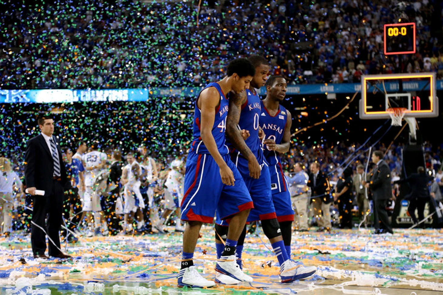 Тем вечером тяжелый форвард Томас Робинсон, активный «шестой игрок» в системе Селфа, провел великолепную игру, сделав дабл-дабл всего за 15 минут. В концовке встречи, когда «Джейхокс» уже громили соперника, Ти-Роб сел на самый дальний край скамейки, потому что рядом сидели его мама и сестра. «Это были бесценные минуты победы, проведённые в кругу семьи», – говорит Робинсон. После матча он был первым, кто вышел из раздевалки, чтобы провести как много больше времени с родными, пока его самолет не улетит обратно в Лоуренс. Энджел сняла на фото обнимающихся Лизу, Джайлу и Томаса, пообещав прислать фотографии.