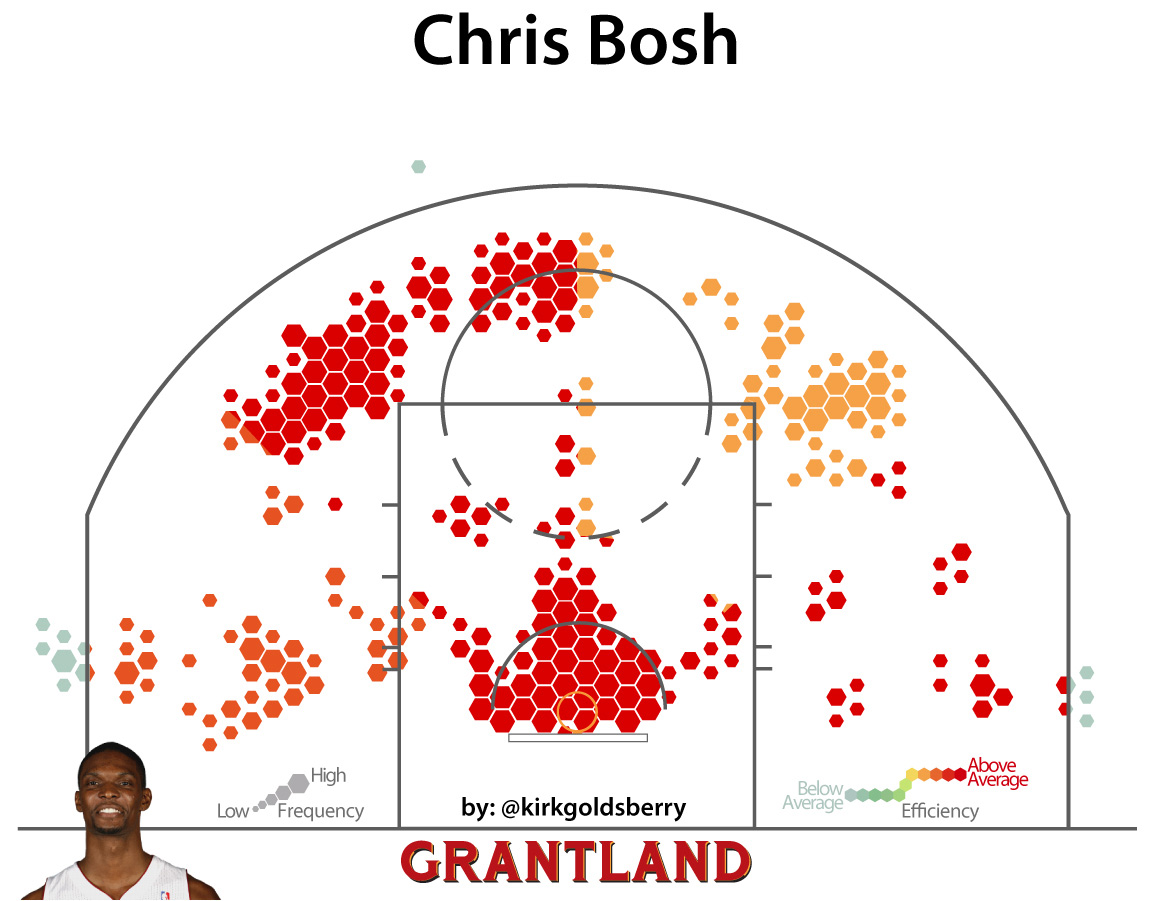 Крис Бош остается одним из наиболее недооцененных бросающих в лиге. Он является:(1) Специалистом по броскам со средней дистанции, и (2), позволяя тем самым своей команде получить сумасшедшую огневую поддержку с этой позиции. Эта способность Боша, дает команде тот самый баланс в нападении. Кроме того, не забывайте, что Бош - все еще сила около корзины.