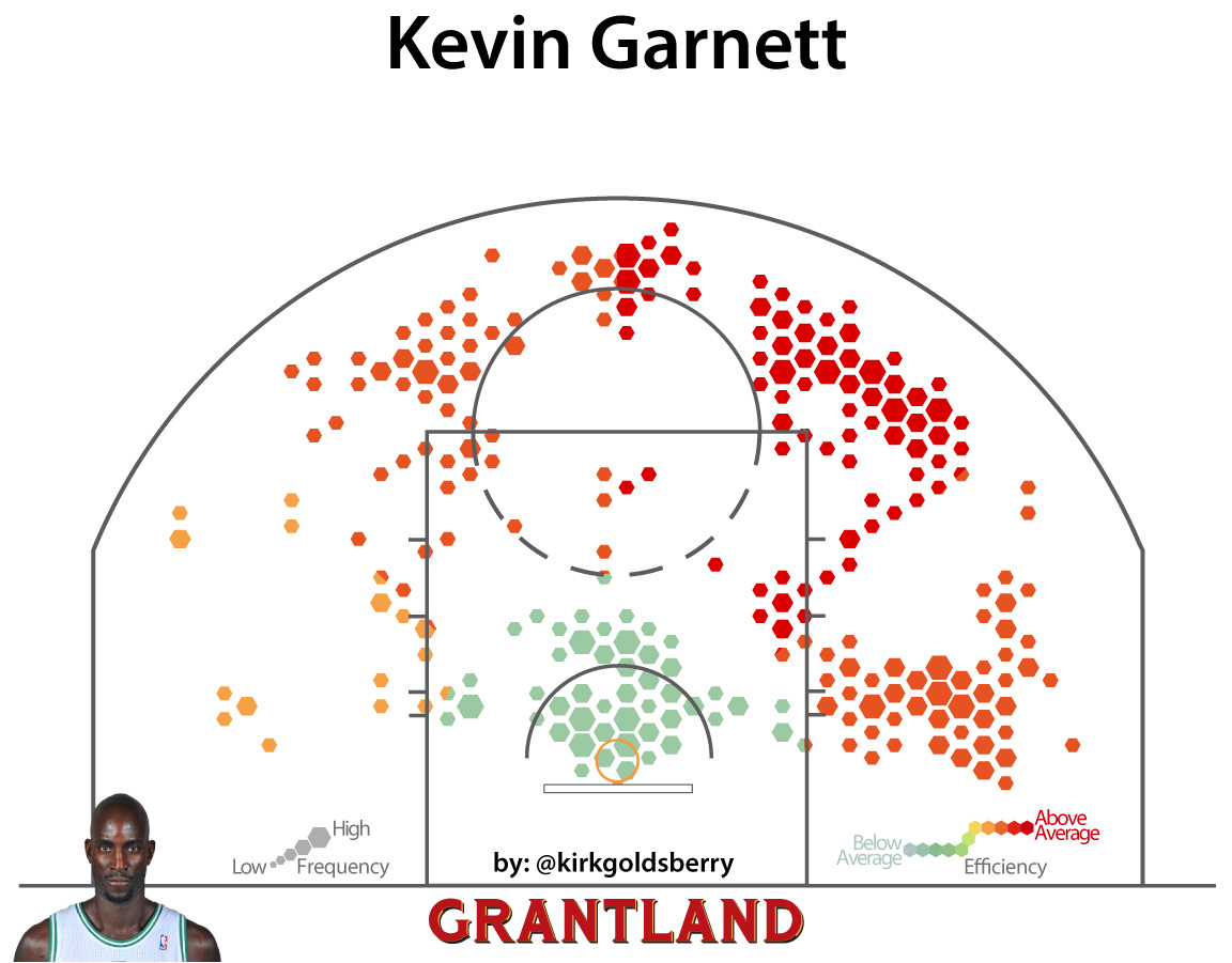Наконец, что не менее важно, сумасшедший дядя НБА, Кевин Гарнетт. По эффективности вдали от кольца, он ничем не уступает Крису Бошу. И помогает Селтикс в эти нелегкие времена. Но, он не так эффективен играя вблизи кольца, но отличается своим мастерством играть спиной к кольцу. Однако, подавляющее большинство бросков Гарнетта прилетают из средней зоны, где он - все еще элитный исполнитель. Он также остается мастером игры в обороне. А также, самым не любимым игроков в лиге. И это здорово!