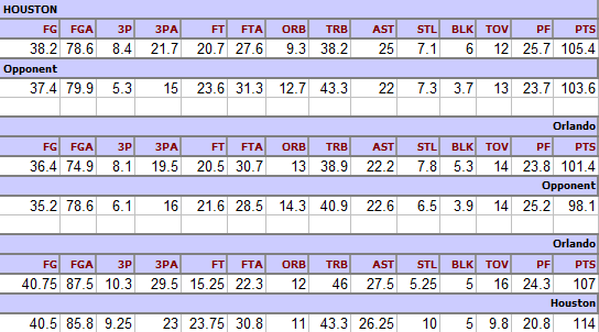 Houston-Opponent и Orlando-Opponent также не включают в себя статистику финальной серии.
