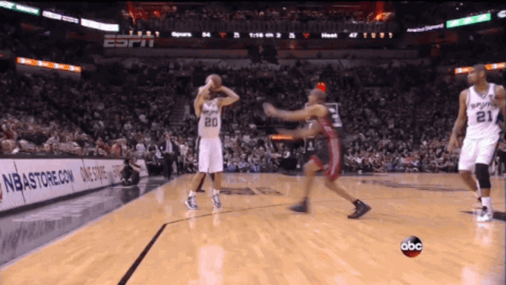 Джинобили был последней звездой финала, который не успел показать себя до 5-го матча, потому все ждали, что именно сегодня он выстрелит. Что аргентинец и сделал. Помимо флоппинга и троллинга он оказался хорош и в других компонентах: взяв на себя многие из функций Паркера, Джинобили чаще разыгрывал пик-н-роллы и старался находить передачами «больших» в «краске» (всего 10). Но по-настоящему он включился в решающий момент: на рубеже третьей-четвертой четвертей «Сперс» выдали рывок 19:1, большая часть которого была сделана благодаря Ману (9 очков) и без Данкана и Паркера. Ключевым фактором стала неудержимость Джинобили в проходах: Ману часто оказывался на линии штрафных (8) и разрыхлял трехсекундную соперников евростепом (7 из 10 двухочковых).