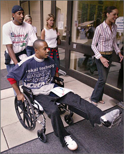 Вдруг Уильямс теряет контроль над мотоциклом. Удар! Эти считанные секунды он запомнит навсегда… Уильямс истекает кровью и не может пошевелиться. Скорая прибыла быстро и уже через несколько минут Джей оказался в госпитале Чикаго, где ему поставили страшный диагноз – перелом таза, поврежденный главный нерв в ноге, три порванные связки в колене и множественные переломы левой ноги, от которой практически ничего не осталось. Разговоры о драфте-2003 и обменах того лета мгновенно отошли на второй план – история Уильямса в те дни не сходила с первых полос СМИ.