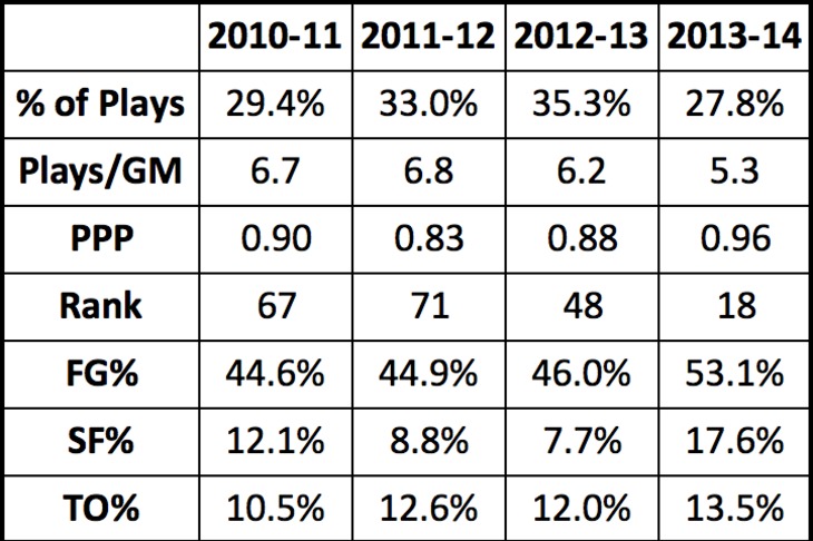 Как уже было замечено ранее, Гриффин разнообразит свои атакующие действия, поэтому процент пост-апов несколько снизился по сравнению с предыдущими сезонами. Показатели очков за владение (PPP) и процент попадания – лучшие в карьере Блэйка, также уроженец Оклахомы с завидной периодичностью зарабатывает на себе фолы при игре в посте.