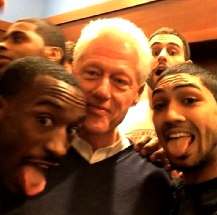 Выпускник Джорджтауна совершенно не ограничивает свои интересы лишь альма-матер: ему нравится студенческий баскетбол в целом, и он старается не пропускать ни одного матча «Безумия». Помимо брэкетов, прогнозов и прочего Клинтон участвует в жизни университетского баскетбола и напрямую: то встретится с Джоном Калипари, то нагрянет в раздевалку Луисвилля, то напишет ободряющее письмо Крису Уэбберу.