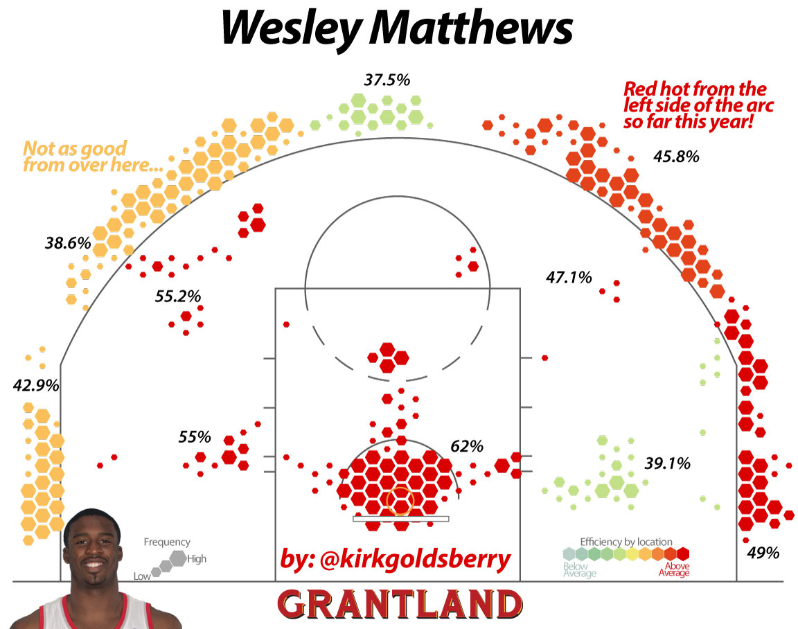 «Портленд» на данный момент представляет собой лучшую историю сезона, и одной из главных причин этому служат трехчоковые. Мэттьюз фантастически бросает в этом году, и должен быть среди претендентов на звание «самого прогрессирующего». Стоит сказать, что Уэс крайне хорош в бросках из-за дуги, но наибольшую пользу он приносит слева от кольца в бросках под 45 градусов и из угла, где он является возможно лучшим в лиге.