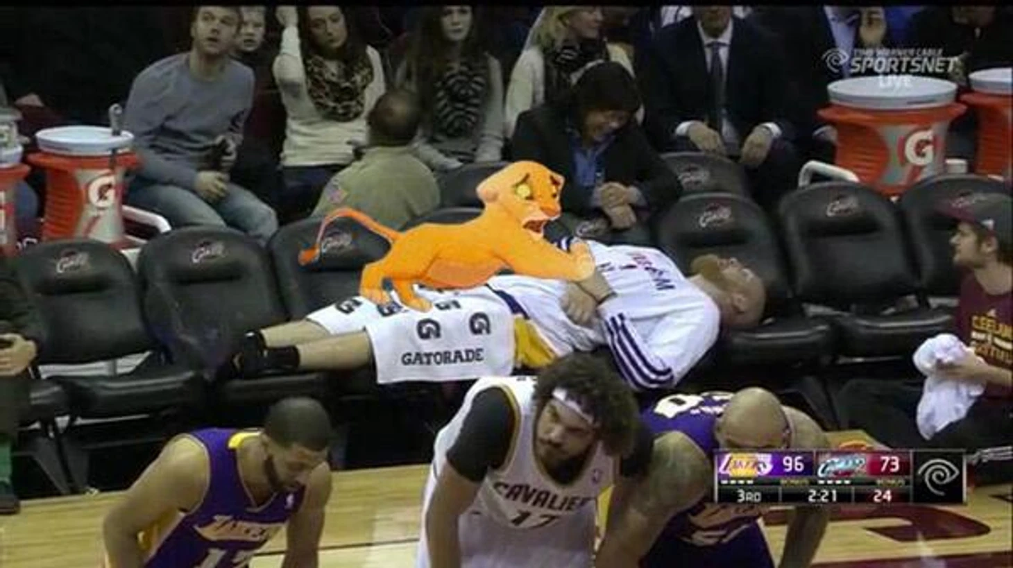 В Кливленд прибыли «Лейкерс». Тоже клинический случай: с талантами Майка Д’Антони по выведению из строя всех, кто есть под рукой, ростер сократился до восьми игроков, еще два получили травмы по ходу матча, еще два отфолились, так что Роберту Сакре пришлось остаться на площадке с шестью фолами – но «Кэвс» все равно проиграли, дома, дав забить 70 очков в первой половине и установить клубный рекорд по трехочковым (18).