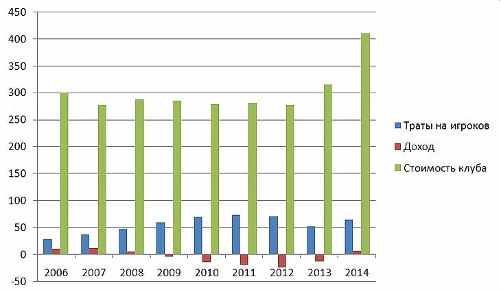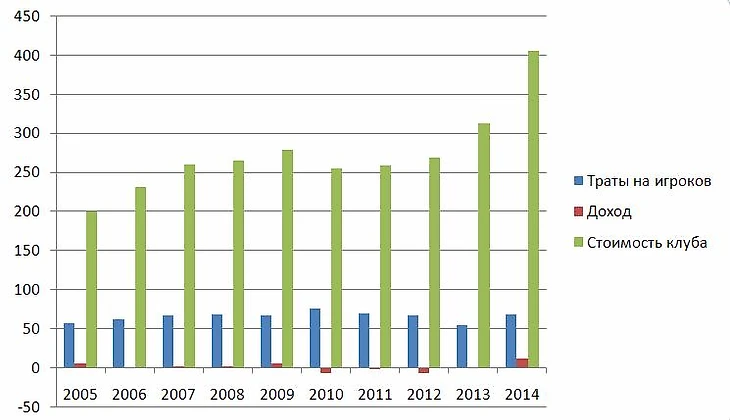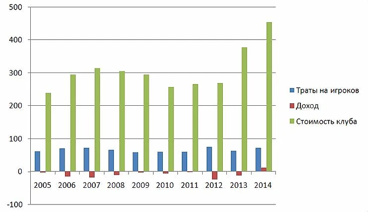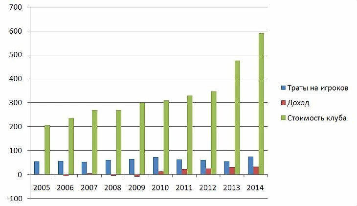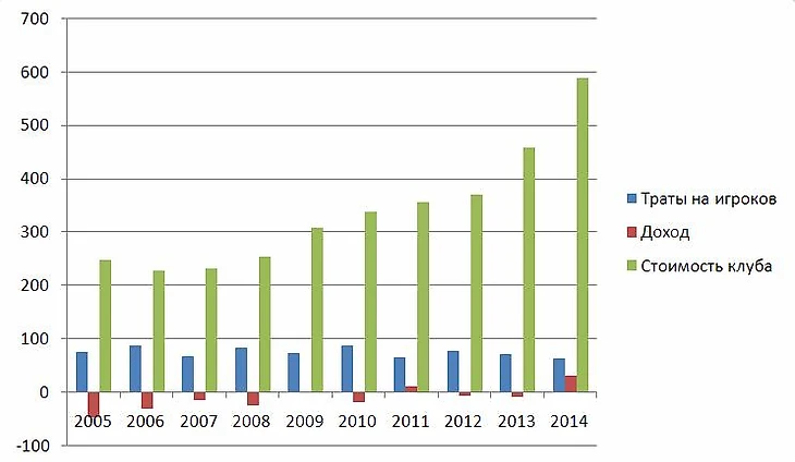 Как это вообще происходит? То есть я купил команду за 300 млн, постоянно терплю убытки, а через пять лет команда стоит условно 600. Как???