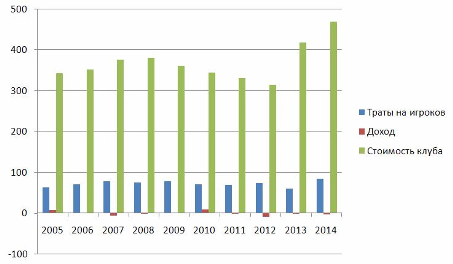И графики неудачные получились: нужно было для прибыли и расходов на игроков одну шкалу делать, а для стоимости клуба - другую.