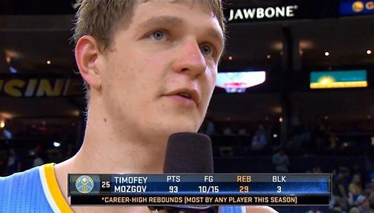 29 подборов – не только мой личный рекорд, но и – цитирую кого-то из журналистов: «…наивысшее достижение сезона в НБА, достижение среди всех россиян в истории лиги, рекорд для игроков «Денвера», после 2010 года, набравших в одной встрече больше 20 очков и 20 подборов и, наконец, пропуск в уникальную компанию: Тимофей Мозгов, Кевин Лав, Кевин Уиллис, Дикембе Мутомбо и Чарльз Оукли – больше «23+29» за последние 30 лет не делал никто, причем, только Мозгов и Лав фиксировали эти показатели в XXI веке…»