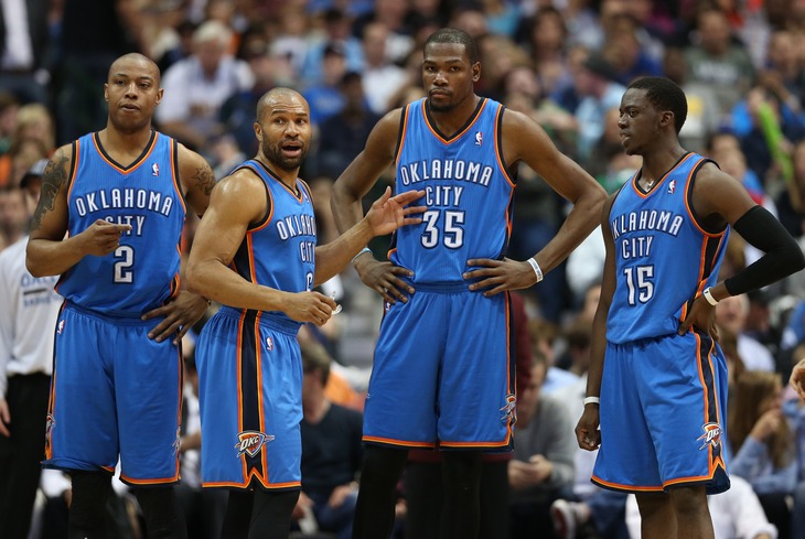 Ник Коллисон может играть и стартового четвертого, позволяя Дюрэнту спускаться на лёгкого форварда, но тогда ОКС сильно потеряет в индивидуальном таланте против убийцы – но кто ещё? Игра Стива Адамса и Кендрика как дуэта двух башен незамедлительно откликнется провалом, а доверять Перри игру в НБА – глупость.