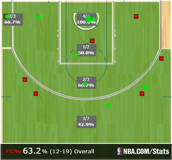 Строго говоря, это не сюрприз: сочетание с Рашардом Льюисом было лучшим по ходу сезона по «+/-» – и все же это странное ощущение возвращения в прошлое. В 5-м матче Льюис не только толкался с Уэстом, но и наказывал того за позиционные ошибки и/или попытки компенсировать медлительность Хибберта – 6 из 9 из-за дуги.
