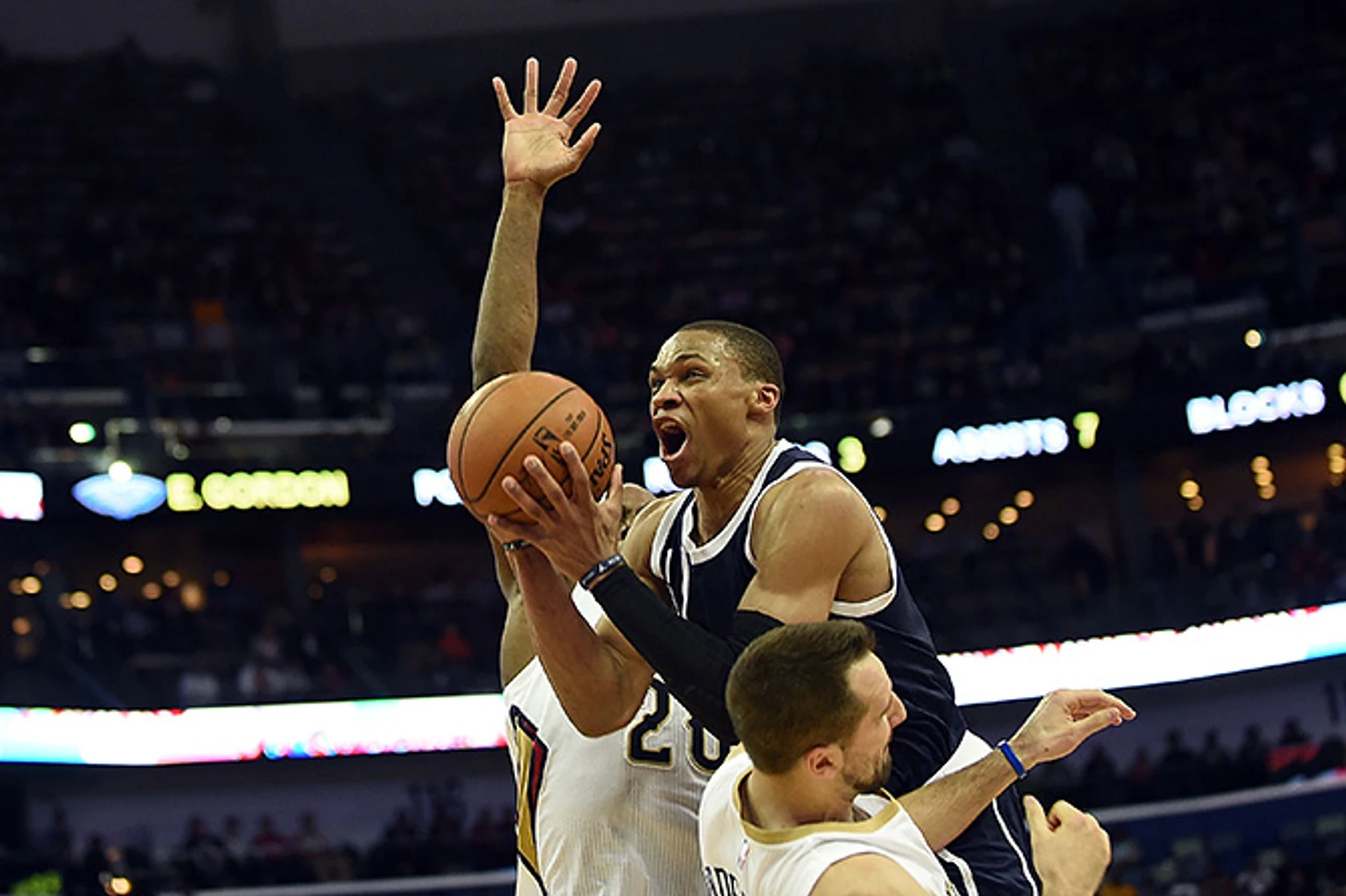 Из-за травм, местами странной ротации, не приспособленного к отсутствию лидеров нападения и Скотта Брукса «Оклахома» не может нащупать ритм, так что спасти команду может лишь один человек. Безумие Расселла Уэстбрука достойно не одной песни, и каждая победа «Оклахомы» заставляет сочинять все новые. На фоне потерявшегося Реджи Джексона, который теперь соревнуется в результативности с Перкинсом (и проигрывает), на фоне всех проблем с составом, отсутствующим и присутствующим, Расс показывает себя любимым учеником Кобе – 45 очков из командных 102, шесть передач и шесть подборов. Он рвет и мечет. Перешагивает все мыслимые границы. Заставляет команду абстрагироваться от проблем. Внутренней яростью уничтожает антропометрическую разницу между собой и Энтони Дэвисом.