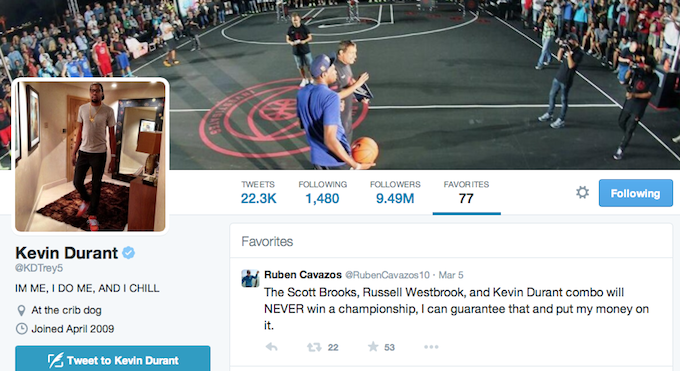 Поскорее бы уж Кевин Дюрэнт вернулся, а то он за время травмы успел докопаться в интернете до всех школьников.