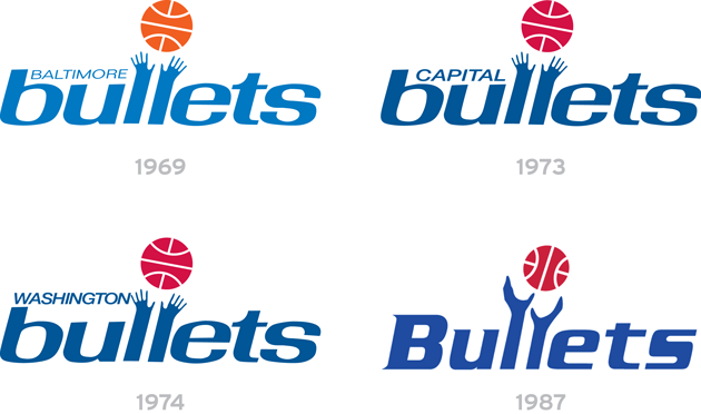Давным-давно, когда я еще не интересовался баскетболом, у меня была неизвестно каким образом добытая большая наклейка на шкафу с этим логотипом (версии 1974 года) – увы, давно нет ни наклейки, ни шкафа, ни лого, ни даже названия. Как только клуб переехал на новую арену Verizon Center, он стал именоваться «Уизардс», поскольку никнейм «пули» слишком сильно напоминал владельцу клуба о криминогенной обстановке в Вашингтоне.