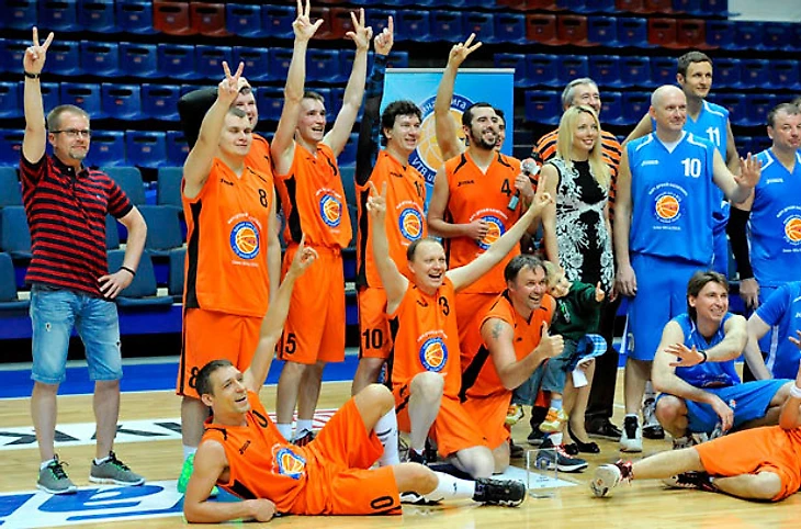 Моя вторая игра в качестве тренера состоялась в рамках традиционного «Матча друзей» Единой Лиги ВТБ. Перед первым финальным матчем плей-офф на главную арену ЦСКА вышли сборная журналистов и сборная офиса Лиги. Мне, как работнику Единой Лиги ВТБ, досталась вторая команда. В ее состав вошли настоящие звезды: Иржи Зидек, Томас Пачесас, Павел Астахов, Сергей Кущенко, Олег Фокин...