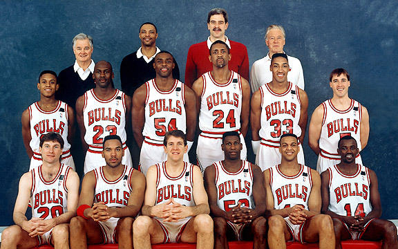 Деннис Родман, вопреки своей скандальной репутации и скверному характеру, стал последним штрихом в слаженном механизме Фила Джексона, который предоставил «фрику» полную свободу действий на своей половине площадки. Быки играли в красивый, бескомпромисный баскетбол. Результат – 72 победы в регулярном чемпионате, недосягаемый рекорд. Чикагцы выиграли 87 игр из 100, включая плей-офф. Рон Харпер, Люк Лонгли, Тони Кукоч и Стив Керр – это винтики безотказного треугольного нападения Чикаго. Этот сезон стал первым полным для Майкла после возвращения. 41-3 на старте сезона, незабываемая финальная серия против Сиэтла (4-2). Аве, Чикаго Буллс!