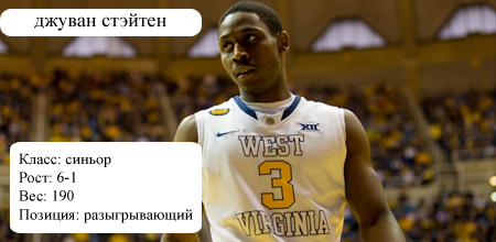 В следующем году Боб Хаггинс не сможет воспользоваться услугами двух важных защитников своего прошлогоднего состава, в частности лидера и лучшего атакующего игрока «Маунтинирс» Джувана Стэйтена. Уроженец Дэйтона провел первый год в студенческом баскетболе в составе одноименного университета, но затем перебрался в Моргантаун и после блеклого дебюта в «Биг 12» выдал потрясающий сезон 13/14, в котором набирал больше 18 очков вдобавок к почти 6 подборам и стольким же передачам. Такая игра Стэйтена даже заставила журналистов эмоционально и поспешно вручить ему статус главного фаворита на титул игрока года в «Биг 12», хотя стоило учитывать, что обновленный стиль и состав команды вряд ли позволят Джувану повторять такую статистику в выпускном году. Даже несмотря на мелкие повреждения, Стэйтен оставался мозгом «Западной Вирджинии» и одним из немногих, кто мог гарантировать стабильные полтора десятка очков за игру, кинжальные проходы и адекватное руководство позиционными атаками. По сути, до выбора на драфте ему не хватало лишь наличия стабильного трехочкового броска, так как даже небольшой рост он компенсировал быстрым первым шагом и мощным телосложением.