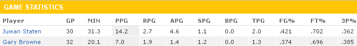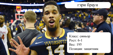 Пуэрториканец Гэри Браун вытерпел немало критики даже от собственных болельщиков в свои первые три года, но выпускной сезон провел на мажорной ноте, стал самым надежным снайпером с дальней дистанции для этой небросающей команды и демонстрировал лидерские качества как в защите, так и в атаке: не боялся брать на себя инициативу, играть контактно (еще бы) и выкладываться до конца. Такой Гэри Браун разительно отличался от его собственной версии, скажем, двухлетней давности, когда он чаще запоминался ошибками и плохими бросками, тем более на фоне выжигающих Стэйтена, Харриса и Хендерсона. Теперь он часто был в числе лучших игроков команды и в итоге закончил карьеру, приняв участие в 129 матчах в майке «Западной Вирджинии» – это 8-й результат в истории университета. Интересно, что Браун также стал единственным из рекрутинг-класса Боба Хаггинса 2011 года, кто сыграл в Моргантауне все четыре года. Китон Майлз, Аарон Браун, Джабари Хайндс – все они были довольно перспективными в свое время, но теперь представляют другие команды, а Браун, несмотря на неудачи по ходу карьеры, смог с «Горцами» дойти до «Sweet 16», оказавшись вознагражденным за свою работу.