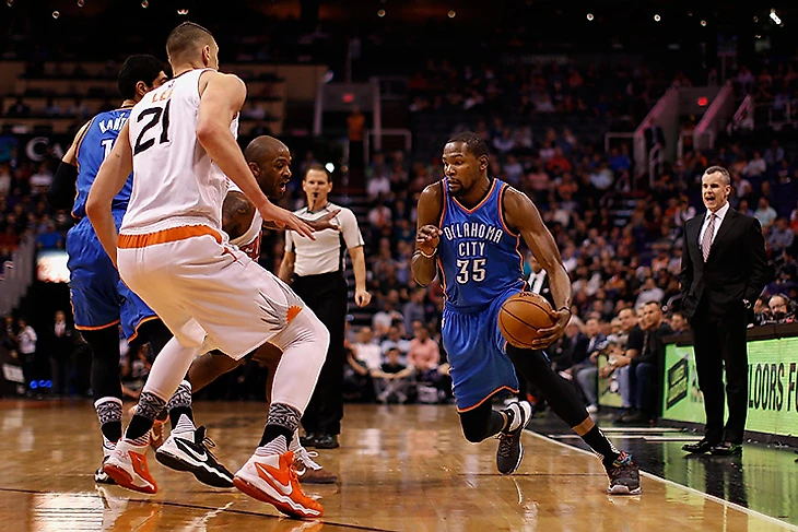 В-третьих, потому что все-таки «система». Даже при том, что нападение «Оклахомы» не всегда блещет, Уэстбрук бывает предсказуем, а Дюрэнт часто создает ситуации самостоятельно, он является самым метким игроком лиги из тех, кого не зовут Стефом Карри. А теперь представьте его в «Уорриорс» или «Сперс»… Все, все, это в последний раз.