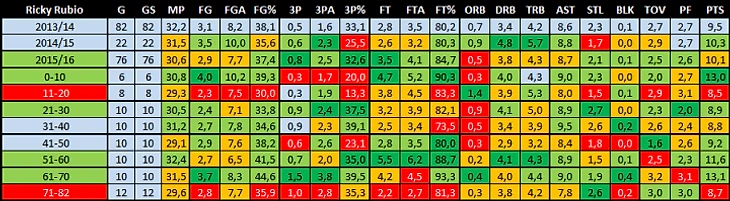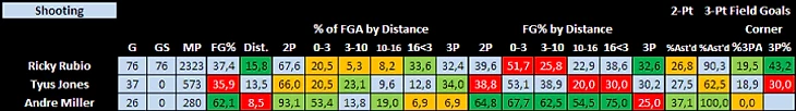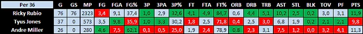 Сегодня начнем с разыгрывающих, а именно Рубио, Джонса и Миллера. Последний уже машет полотенцем на лавке в Сан-Антонио. Рубио, как ни странно, пропустил всего 6 игр и к концу сезона даже немного улучшил бросок. А Джонс хотя бы начал получать игровое время и несколько раз продемонстрировал довольно здравые решения на площадке.