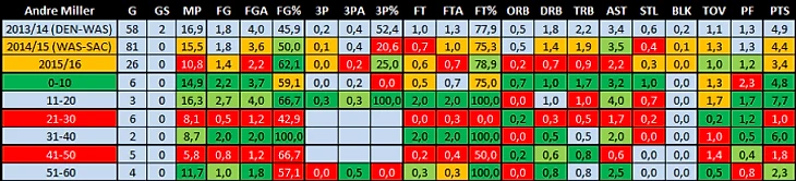 Миллер является одним из самых опытных игроков НБА и его подписали в надежде, что он сумеет передать свой опыт молодым защитникам команды, при этом получая достаточно игрового времени, подменяя Рубио. Но по известным причинам тренером команды стал другой человек, который решил отдать время Миллера ЛаВину. Судя по комментариям Андре, сделанным уже после выкупа его контракта и подписания в Сан-Антонио, он был недоволен своей ролью и не хотел заканчивать карьеру, глядя со скамейки, как молодые набивают шишки и борются за высокое место на предстоящем драфте. Сложно судить, насколько хорошо он справился с ролью ментора, но, если следить за действиями такого опытного человека на тренировках, раздевалке и скамейке, уже можно перенять некоторые привычки и навыки, которые помогут хотя бы получить шанс на такую продолжительную карьеру.