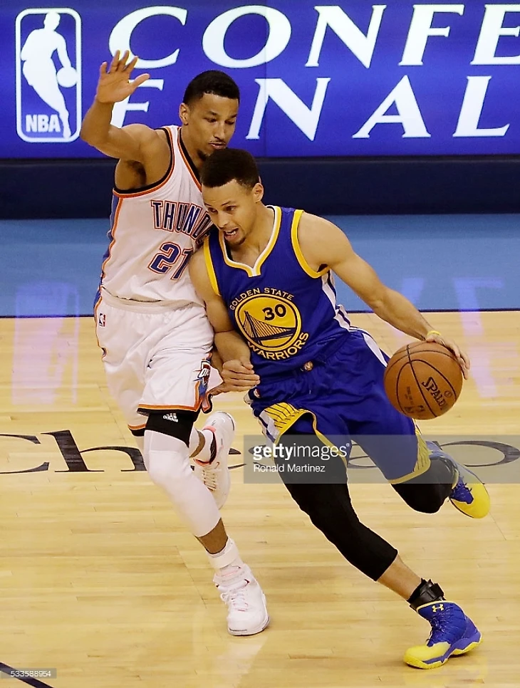 А также открытие этой серии, лично для меня, Андре Робертсон, который был, наверно, самым бесполезным игроком в атаке в регулярном сезоне, а затем похоронил «Сан-Антонио Сперс» в последнем матче (14 очков, 3-5 из-за дуги, 7 подборов, перехват и 2 блокшота), но то, что он делает в финале конференций просто поражает, у него защитный рейтинг 96 – больше всех в обеих командах, дает 6 подборов, 10 очков, 2 перехвата и блокшот в среднем за игру, 6-11 трехочковых за 4 матча с процентом 55. Из простого ролевика, которого выпускают, когда нужно защищаться, он превратился в железного игрока основы, защитного лидера и довольно серьезную атакующую единицу, которая в самый важный момент может выстрелить (4 матч серии – 17 очков при 7/12 с игры, 12 подборов, 2 блокшота и 0 потерь). Мне кажется, такого не ожидали даже в самой Оклахоме, не то, что в Окленде.