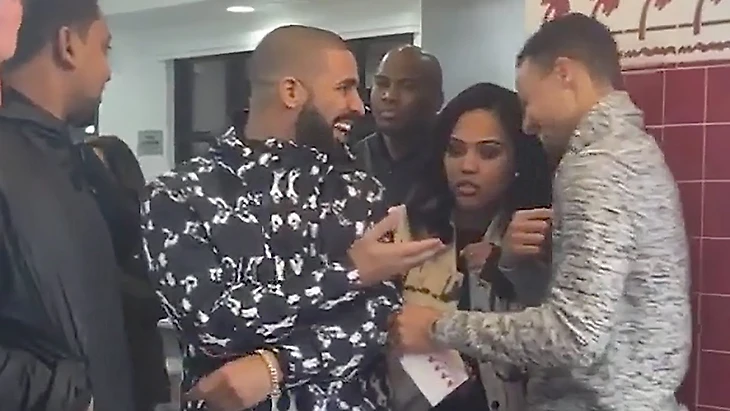 Дрэйк сидел на первом ряду во время матча плей-офф – и чистил штаны от катышков.