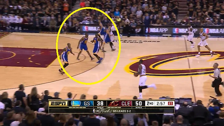 Например, в этой атаке «Кливленда» калифорнийцы успели вернуться в защиту и даже имели численное преимущество.