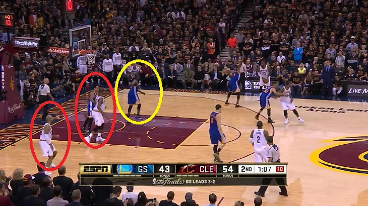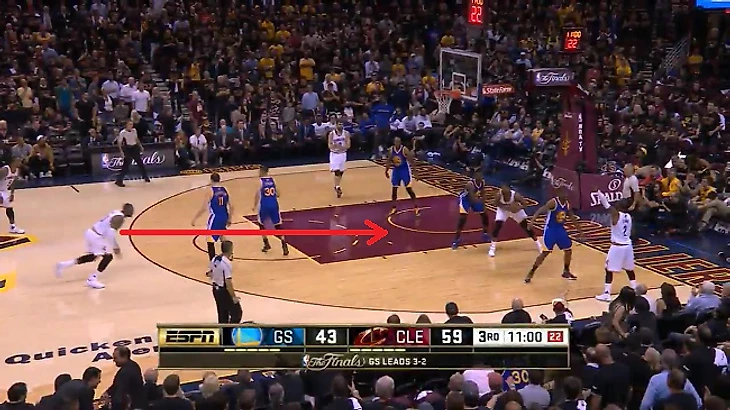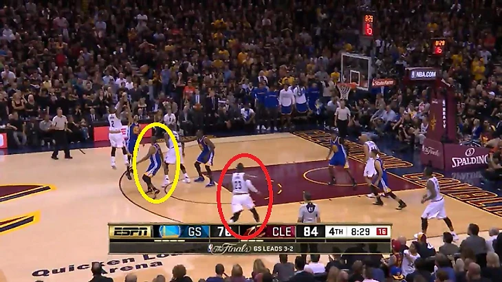 Чтобы понимать о чем идет, хорошей иллюстрацией служит следующий эпизод. «Кливленд» разыгрывал пик-н-ролл для Леброна.