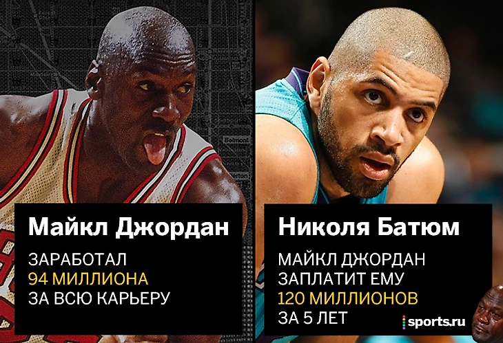 Сейчас Джордан владеет клубом «Шарлотт» – этим летом Николя Батюм, не являющийся даже лучшим игроком «Хорнетс», подписал 5-летний контракт на 120 миллионов долларов.