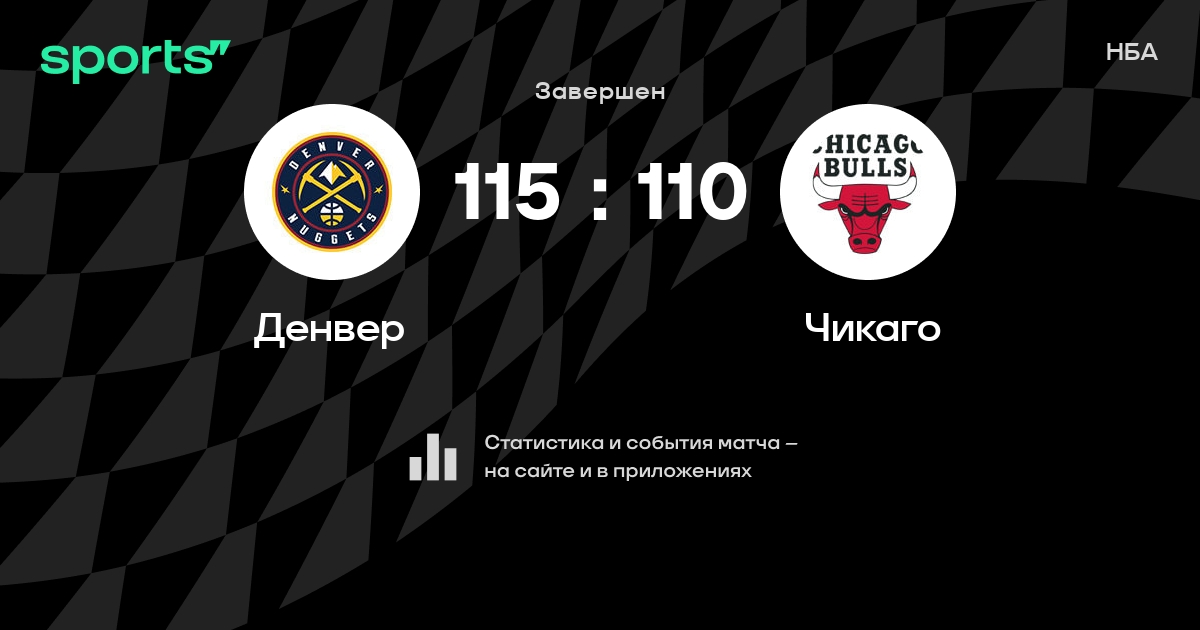 В прошедшем матче в рамках турнира НБА состоялась встреча команд Денвер - Чикаго в городе Денвер (США) на стадионе Ball Arena (вместимость - 18007) со счетом 115 : 110.