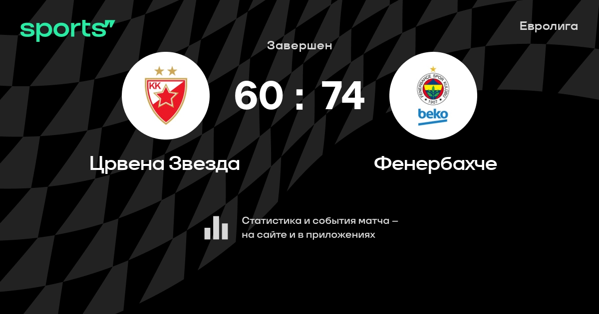 В прошедшем матче в рамках турнира Евролига Группа A состоялась встреча команд Црвена Звезда - Фенербахче в городе Белград (Сербия) на стадионе Белград Арена (вместимость - 22386)