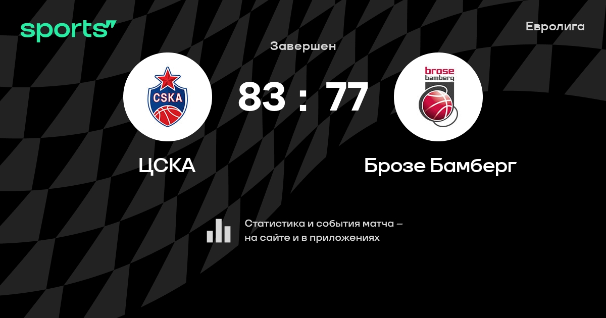 В прошедшем матче в рамках турнира Евролига Группа D состоялась встреча команд ЦСКА - Брозе Бамберг в городе Москва (Россия) на стадионе УСК ЦСКА им. А.Я. Гомельского (вместимость - 4500)