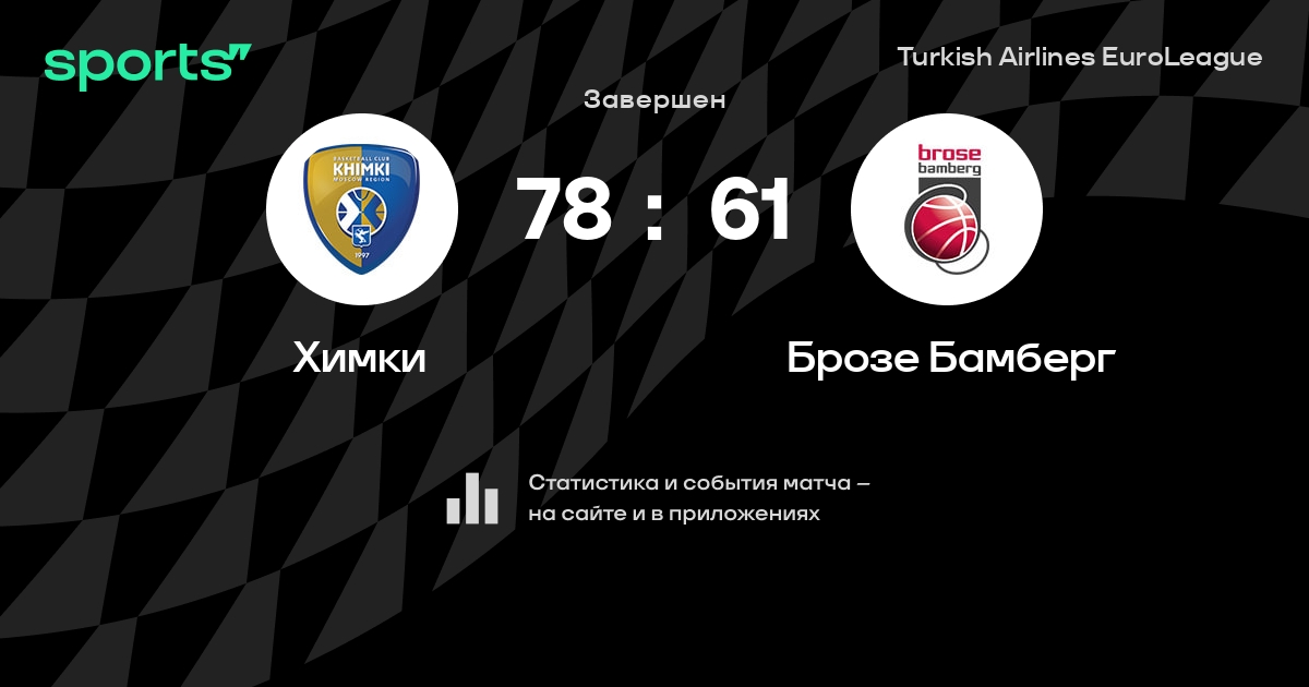 В прошедшем матче в рамках турнира Turkish Airlines EuroLeague Топ-16. 4 тур состоялась встреча команд Химки - Брозе Бамберг в городе Москва (Россия) на стадионе Баскет Холл Москва (вместимость - 5000)