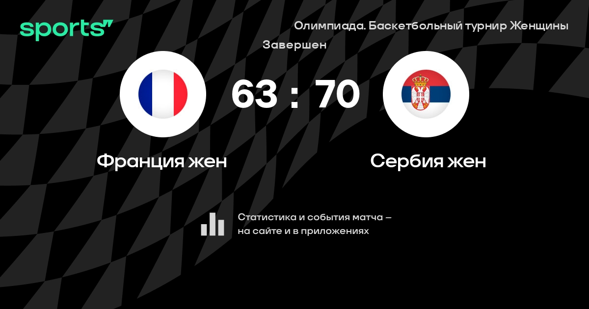 В прошедшем матче в рамках турнира Олимпиада. Баскетбольный турнир Женщины состоялась встреча команд Франция жен - Сербия жен в городе Rio de Janeiro на стадионе Youth Arena