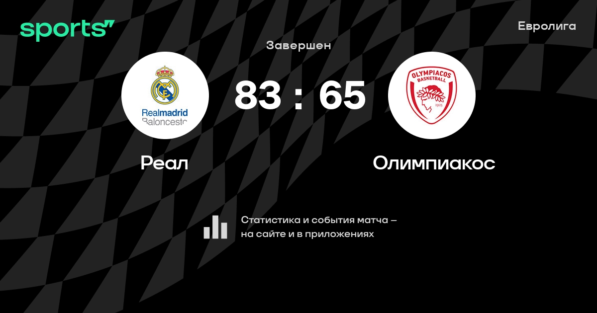 В прошедшем матче в рамках турнира Евролига состоялась встреча команд Реал - Олимпиакос в городе Мадрид (Испания) на стадионе Мовистар Арена (вместимость - 15000)