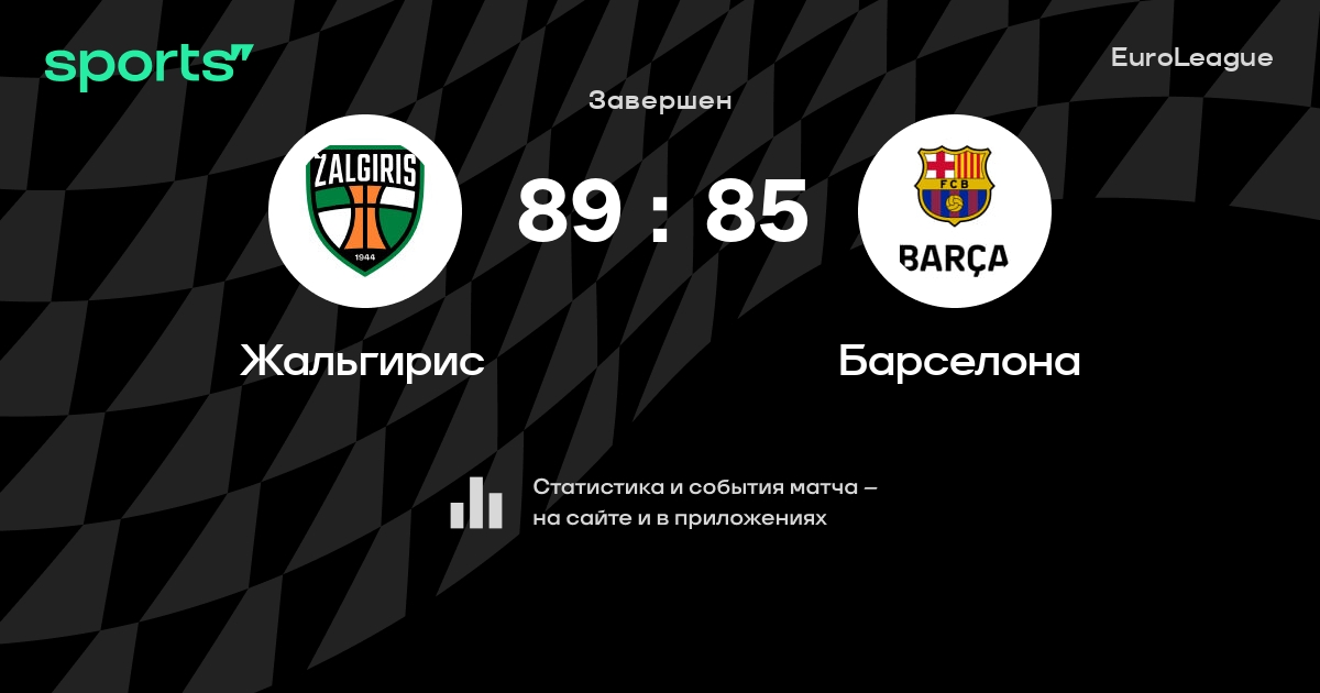 В прошедшем матче в рамках турнира EuroLeague состоялась встреча команд Жальгирис - Барселона в городе Каунас (Литва) на стадионе Жальгирис Арена со счетом 89 : 85.
