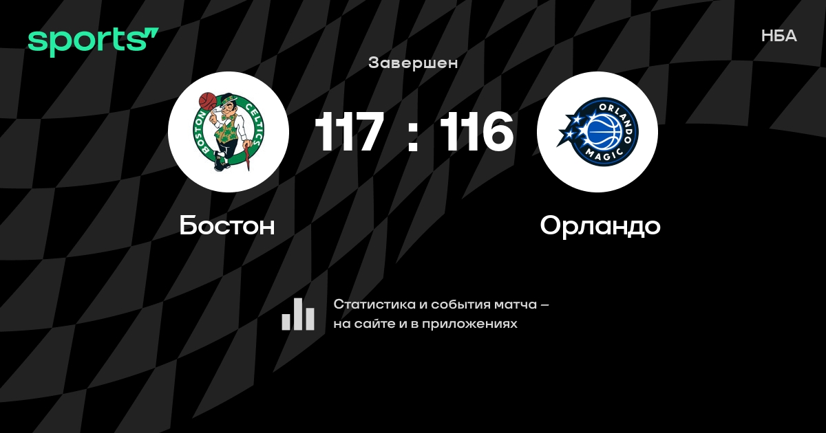 В прошедшем матче в рамках турнира НБА состоялась встреча команд Бостон - Орландо в городе Бостон (США) на стадионе TD Garden (вместимость - 18624) со счетом 117 : 116.