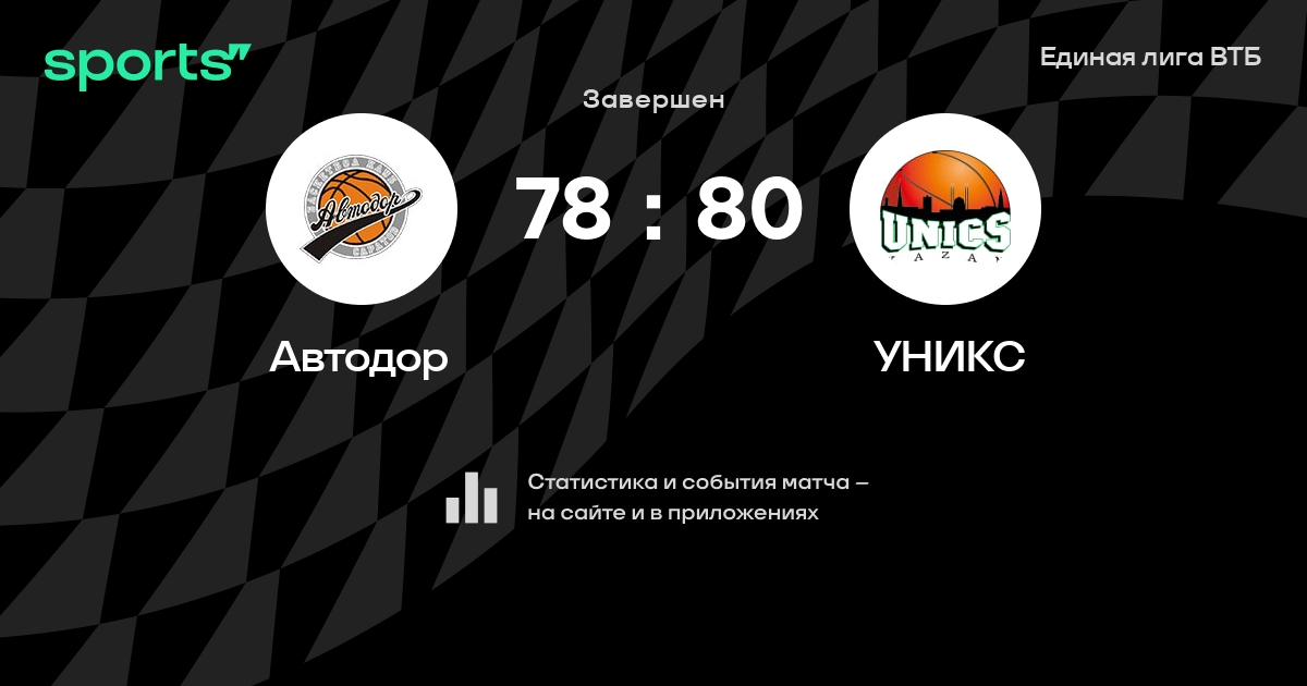 В прошедшем матче в рамках турнира Единая лига ВТБ состоялась встреча команд Автодор - УНИКС в городе Саратов (Россия) на стадионе ДС Кристалл со счетом 78 : 80.