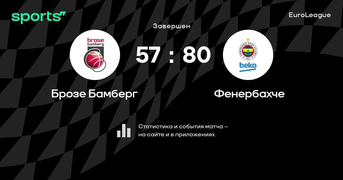 В прошедшем матче в рамках турнира EuroLeague состоялась встреча команд Брозе Бамберг - Фенербахче в городе Бамберг (Германия) на стадионе Брозе Арена (вместимость - 6800)
