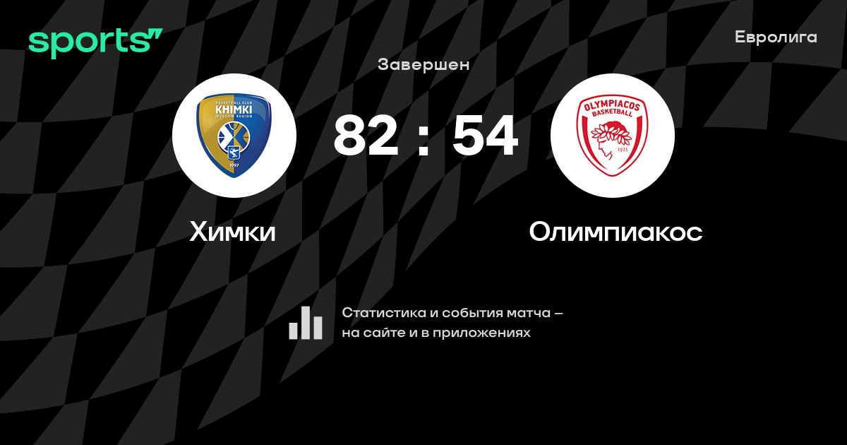 В прошедшем матче в рамках турнира Евролига состоялась встреча команд Химки - Олимпиакос в городе Москва (Россия) на стадионе Арена Мытищи (вместимость - 8000)