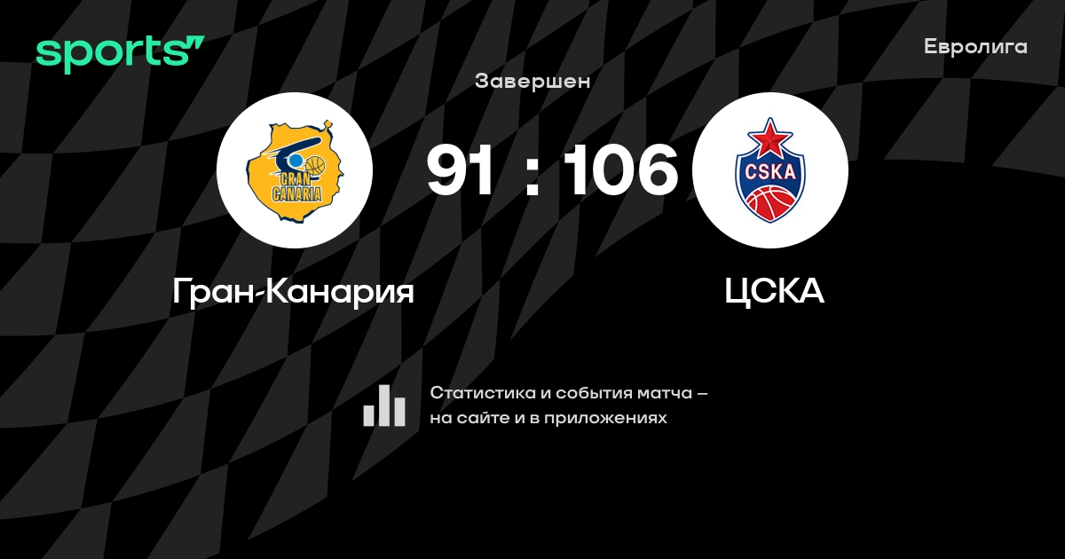 В прошедшем матче в рамках турнира Евролига состоялась встреча команд Гран-Канария - ЦСКА в городе Лас-Пальмас-де-Гран-Канария (Испания) на стадионе Гран-Канария Арена (вместимость - 9865)