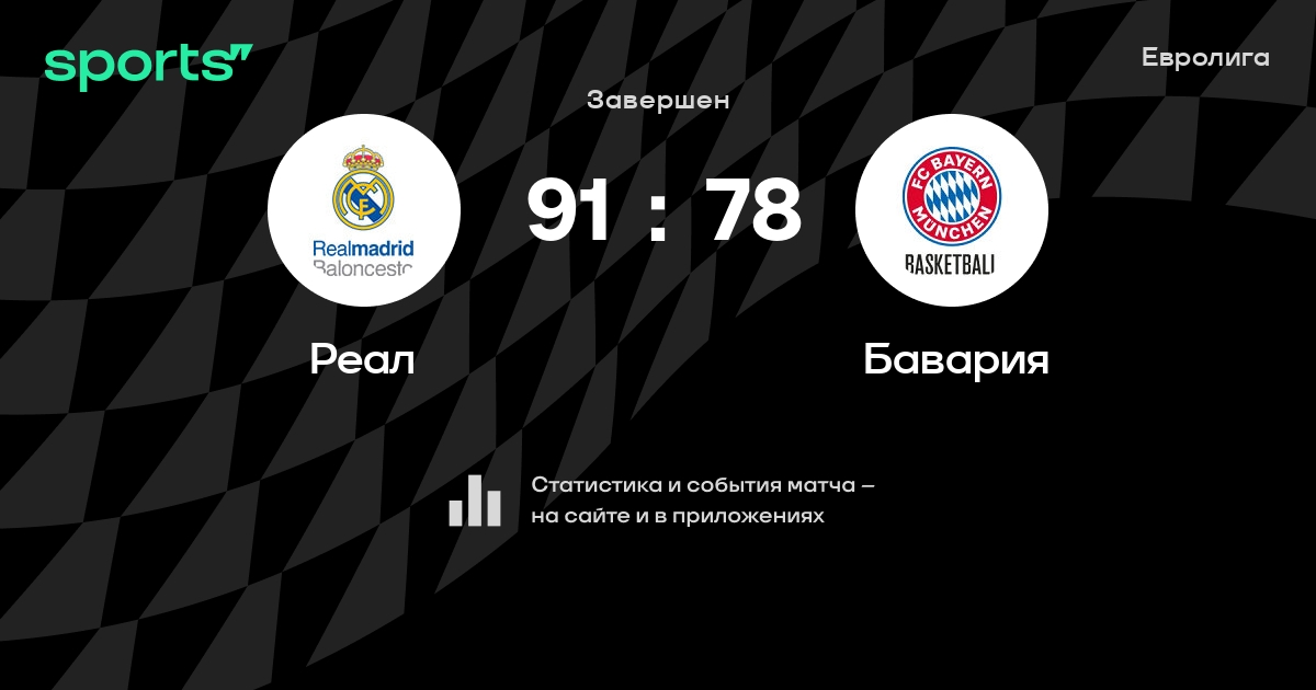 В прошедшем матче в рамках турнира Евролига состоялась встреча команд Реал - Бавария в городе Мадрид (Испания) на стадионе Мовистар Арена (вместимость - 15000)