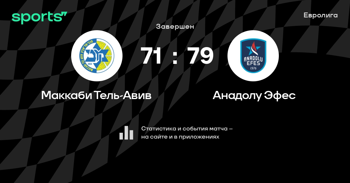 Как прошел матч, смотрите в текстовой трансляции Маккаби Тель-Авив - Анадолу Эфес на Sports.ru