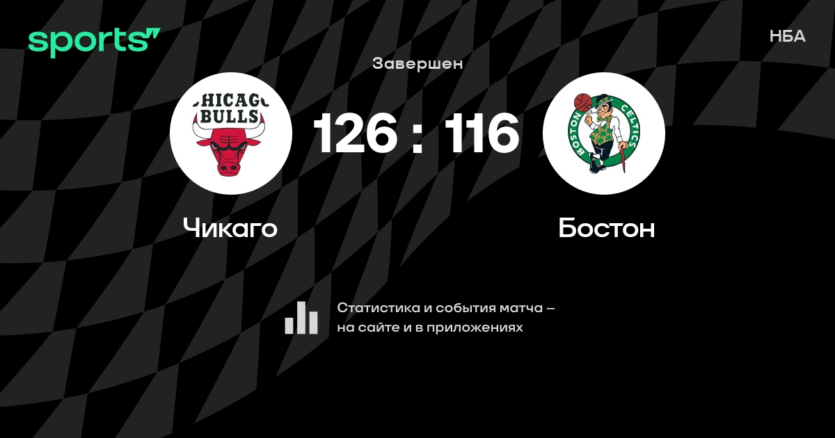 В прошедшем матче в рамках турнира НБА состоялась встреча команд Чикаго - Бостон в городе Чикаго (США) на стадионе United Center (вместимость - 21711) со счетом 126 : 116.